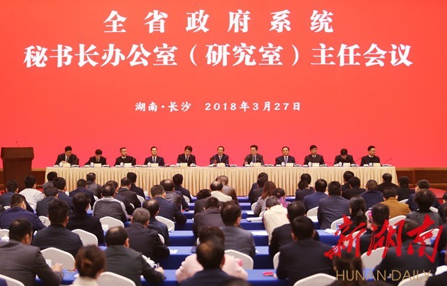 3月27日上午,全省政府系统秘书长办公室(研究室)主任会议在长沙召开。省委副书记、省长许达哲强调,要以习近平新时代中国特色社会主义思想为根本遵循,坚持绝对忠诚的政治品格,推动思想再解放、改革再深入、工作再抓实,做新时代的见证者、开创者、建设者。