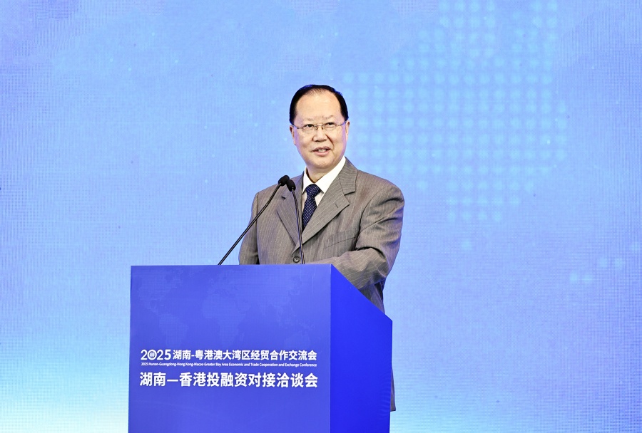 “纵山河远阔,难隔一脉同源;虽千里迢迢,不改携手初心。”毛伟明在致辞中说,长期以来,作为湖南境外第一大贸易伙伴、境外融资第一选择地、入境游第一大客源地,香港在湘投资达241亿美元、占湖南利用外资的67%,两地进出口额连续6年超500亿元,供港农产品70%左右来自湖南,仅去年就有43万香港游客来湘打卡。湖南与香港有着广阔的合作空间,希望双方以更紧密的协作推动科产融合,以更高效的联通促进资本融合,以更开阔的视野加强贸易融合,以更便利的举措深化文旅融合,以更多的新途径新方式,绘就合作共赢新图景。