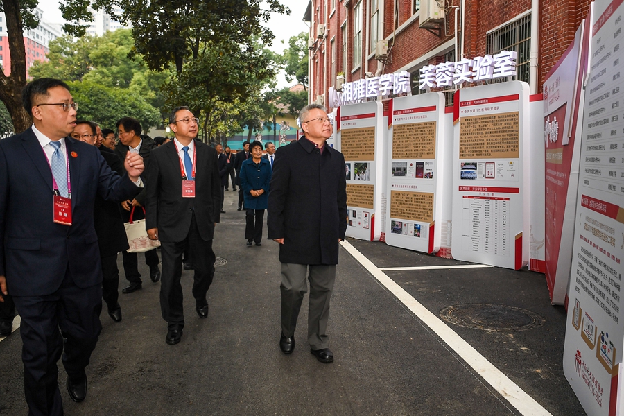 12月8日,沈晓明在中南大学湘雅医学院参观学校高质量发展成果展。
