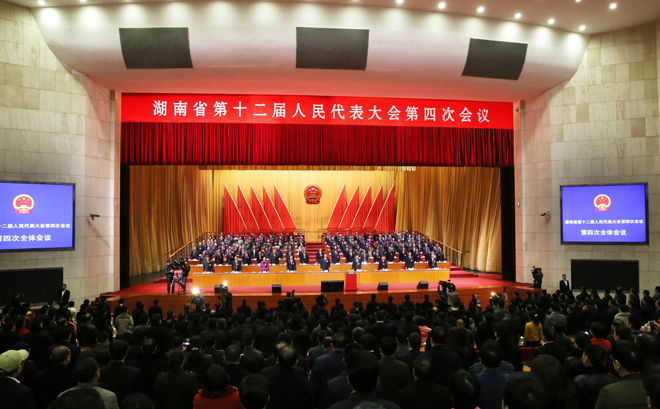 2月1日上午,省十二届人大四次会议圆满完成各项议程,胜利闭幕。湖南日报记者 罗新国 摄