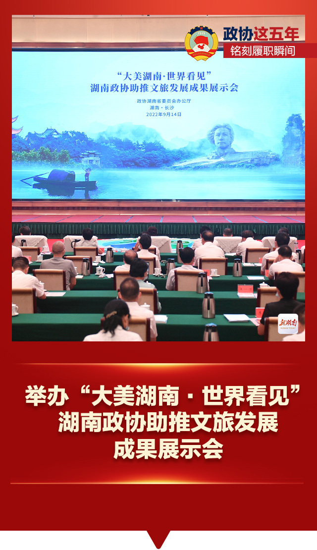 2022年9月14日,湖南省政协举办“大美湖南·世界看见”湖南政协助推文旅发展成果展示会,14位市州政协主席、副主席化身“推介官”,以图文、视频、演讲推介等多种方式,为家乡美景代言。