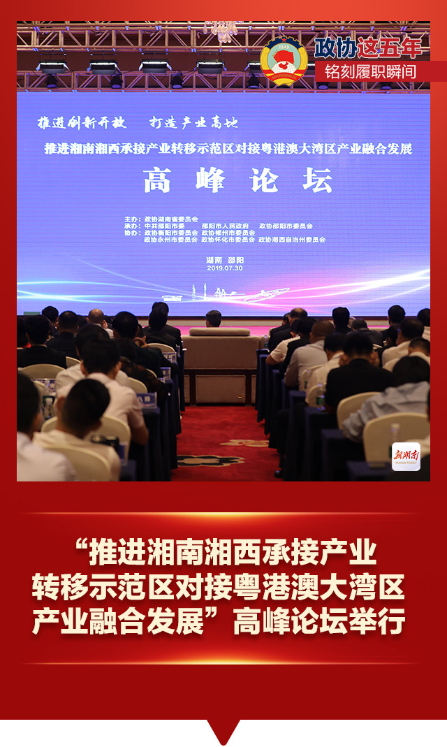 2019年,“推进湘南湘西承接产业转移示范区对接粤港澳大湾区产业融合发展”高峰论坛系列活动在邵阳举行。该活动由省市县三级政协搭台,推动重点项目签约60个。