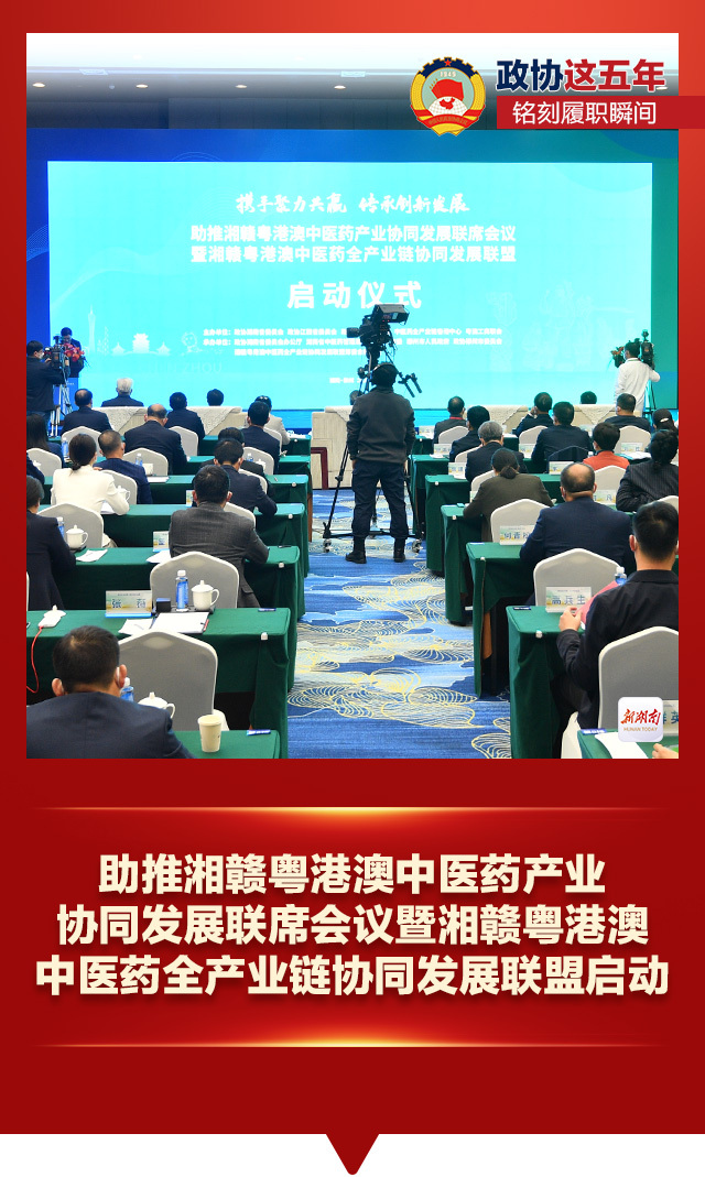 2022年11月16日,助推湘赣粤港澳中医药产业协同发展联席会议暨湘赣粤港澳中医药全产业链协同发展联盟启动仪式在郴州市举行,为我国中医药改革发展提供新的助益、新的动力,为湖南经济高质量发展谋政协之策、展政协之长、尽政协之力。