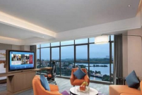 我们的会议室是在一楼。健身房、游泳池、酒吧和商务中心都在二楼。
