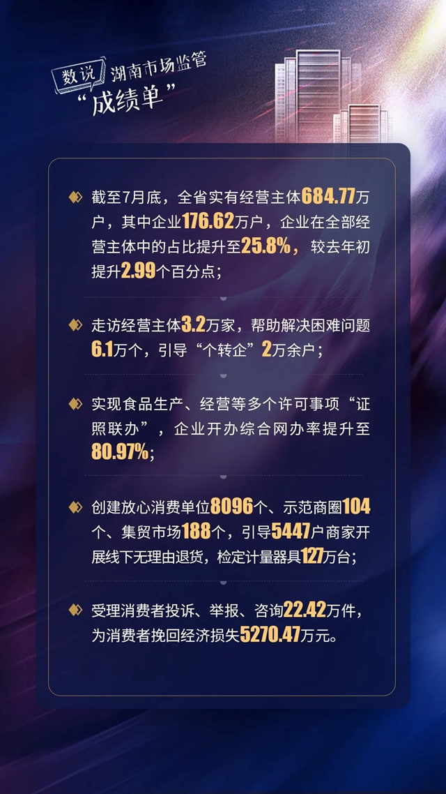 今年以来,湖南市场监管以服务打好“发展六仗”为主线,全面推进各项工作,快来打开这份亮眼“成绩单”!