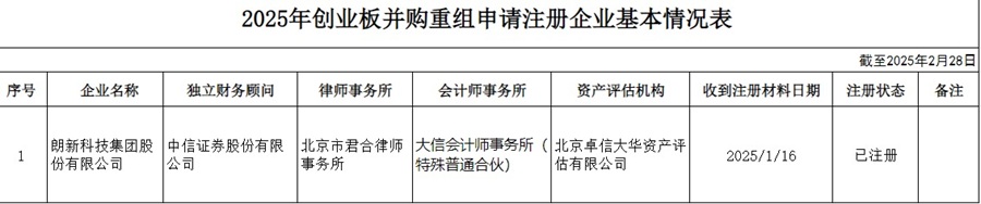 附件:2025年创业板并购重组申请注册企业基本情况表(截至2025年2月28日)