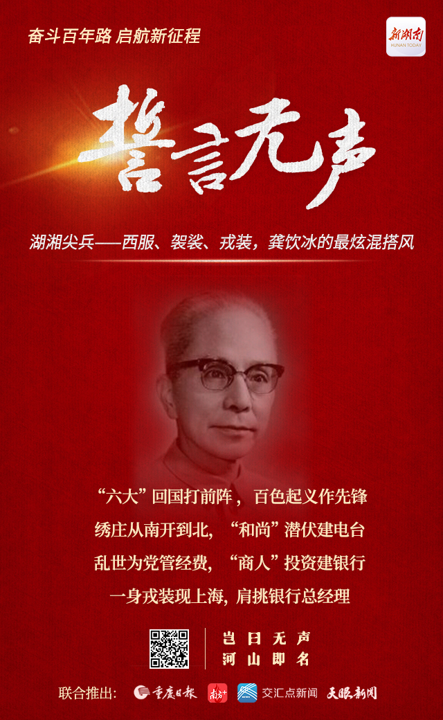 龚饮冰(1896-1976),湖南长沙人,毕业于湖南大学法政专科。1923年加入中国共产党。1924年国共合作期间担任国民党湖南省党部秘书,以公开身份做联络统战工作,与谢觉哉一起办《湖南民报》,担任湖南新闻记者联合会的主委和党团书记。1927年“马日事变”发生后,开始长达20余年的秘密情报工作,在上海领导建立了多部秘密电台。新中国成立后,曾任政务院轻工业部副部长、中国银行总经理、中央统战部副部长、全国人大常委、全国政协常委等职。
