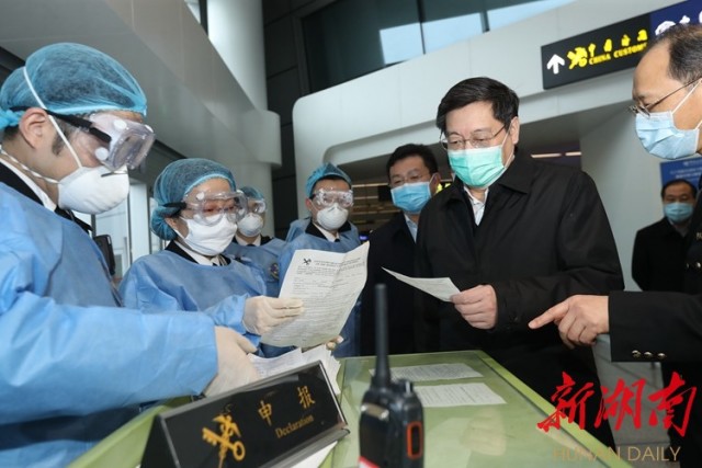 3月4日下午,省委书记杜家毫在长沙黄花国际机场调研指导疫情防控工作。