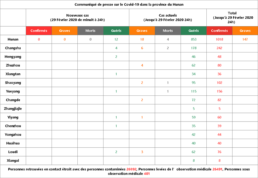 3月1日湖南省新型冠状病毒肺炎疫情信息(含中英法德日韩老俄8国语言版本)