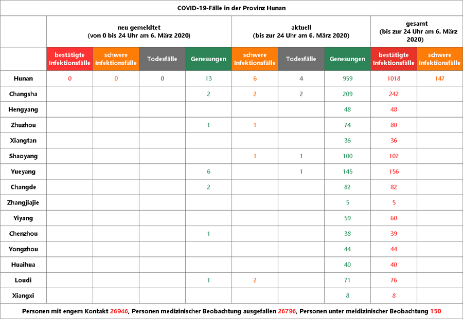 湖南省新型冠状病毒肺炎疫情信息(截至3月6日24时)