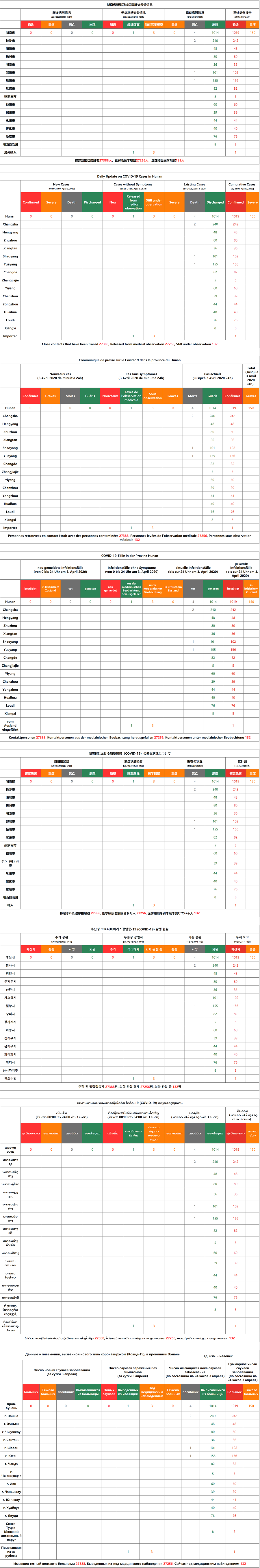 4月4日湖南省新型冠状病毒肺炎疫情信息(含中英法德日韩老俄8国语言版本)