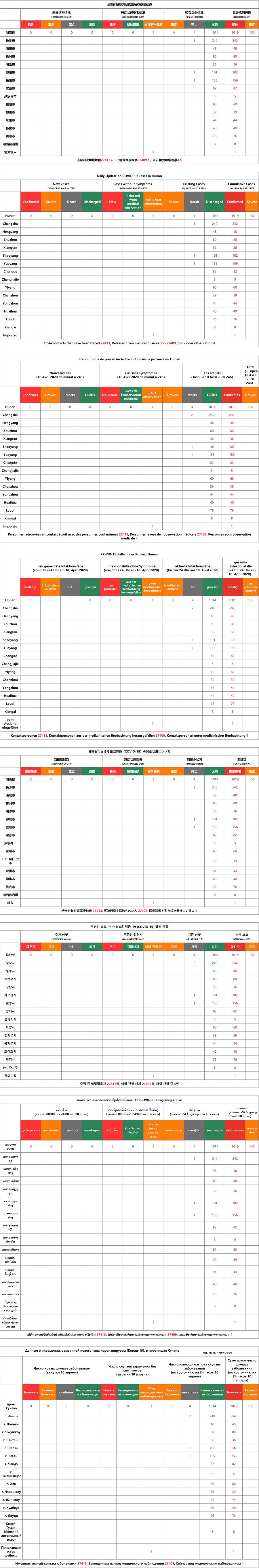 4月11日湖南省新型冠状病毒肺炎疫情信息(含中英法德日韩老俄8国语言版本)