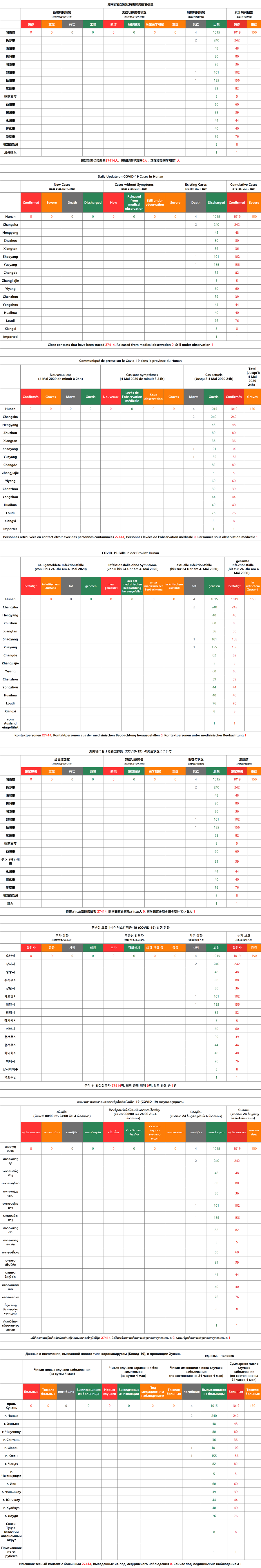 5月5日湖南省新型冠状病毒肺炎疫情信息(含中英法德日韩老俄8国语言版本)