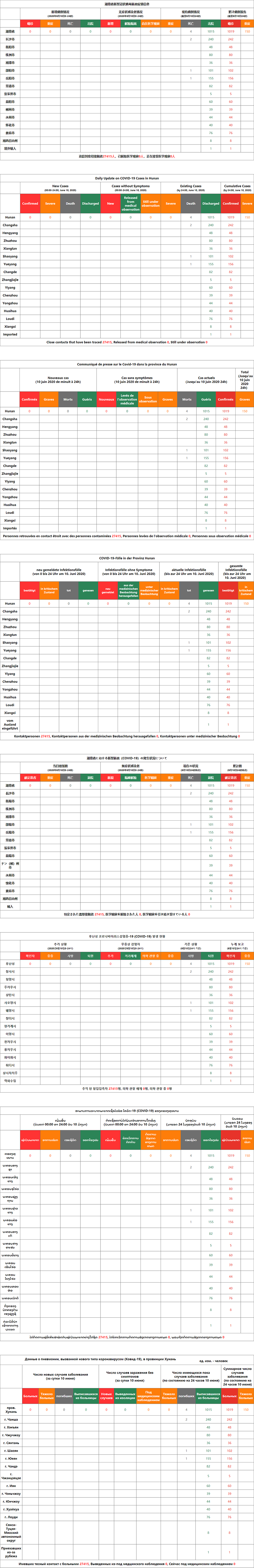 6月11日湖南省新型冠状病毒肺炎疫情信息(含中英法德日韩老俄8国语言版本)