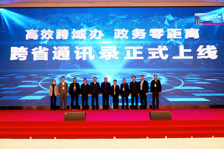 会上,“跨省通讯录”发布上线启动仪式举行。据悉,“跨省通讯录”将为“跨省通办”政务大厅窗口工作人员提供一体化即时通讯和文件传输功能,方便各市区业务部门线上沟通交流,提升数字化治理能力。