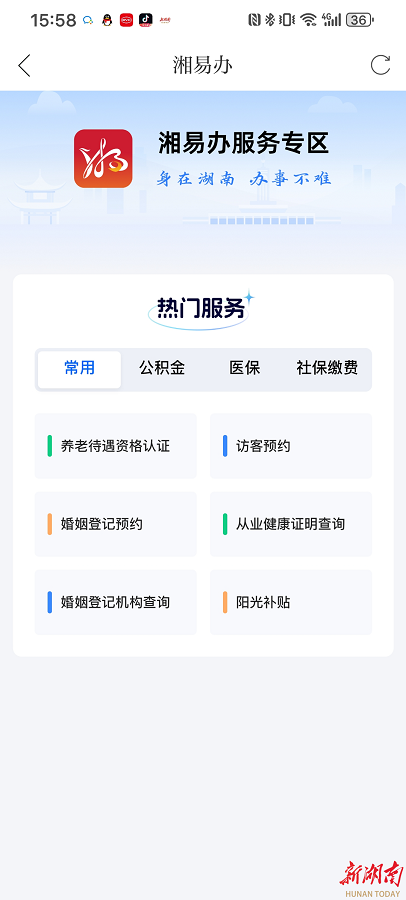 “湘易办”首页金刚区已上线新湖南资讯