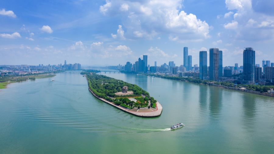 长沙橘子洲头,漫江碧透。