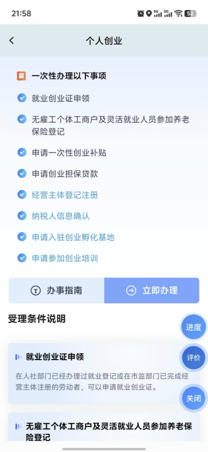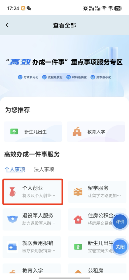 个人创业“一件事”手机端