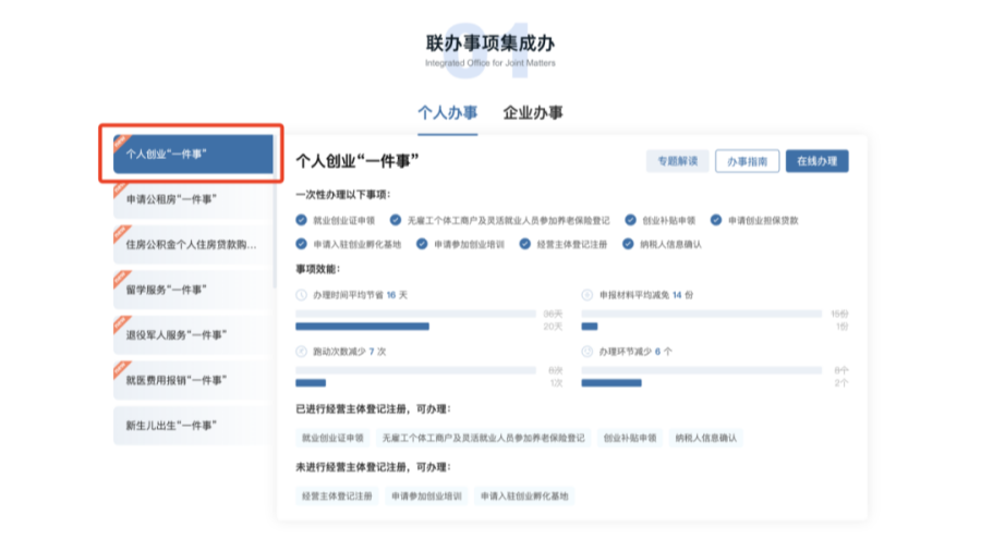 个人创业“一件事”PC端