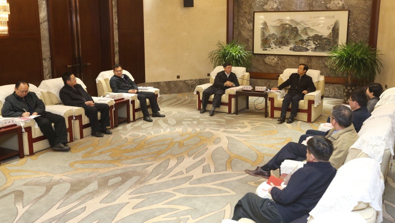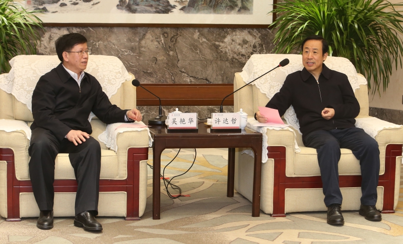 2月25日上午,2019年“中国航天日”活动筹备情况协调对接会在长沙举行。图为省委副书记、省长许达哲在会前会见国家国防科工局参会代表。