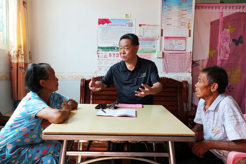 脱贫攻坚战打响后,临武县县共派出驻帮扶工作队92支、工作队员198人,3130名帮扶干部与贫困群众结成了“穷亲戚”。图为一名帮扶责任人正在与结对贫困户进行交流。