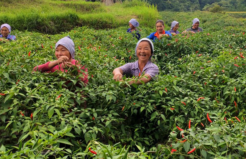 通道侗族自治县独坡镇华盛公司产业基地,菜农们在采摘小米椒。该县逐年加大产业扶贫扶持力度,鼓励产业龙头企业、专业合作社、家庭农场等新型农业经营组织参与产业扶贫建设。目前,通过新型农业经营组织带动贫困户9206户44675人发展产业,人均年增收1000元以上,有效解决贫困户小生产与销售大市场对接难的问题,为产业脱贫提供有效支撑。李利彬 李尚引 摄