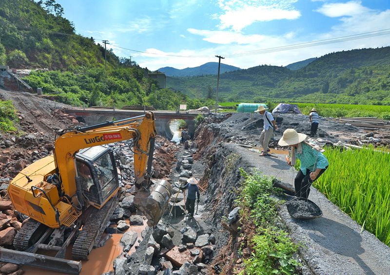 2019年8月2日,泸溪县武溪镇红岩村,村民在加固河堤。该村曾是深度贫困村,地理位置偏远,交通不便。近年来,在当地政府和省民政厅驻村帮扶下,陆续完善了农业、水利、交通和人居环境等基础设施建设,村容村貌得到了明显改善。 湖南日报记者 李健 通讯员 姚俊锋 摄