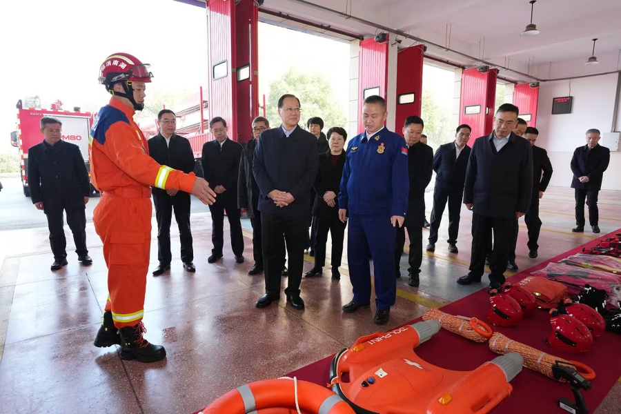 毛伟明来到长沙市洞井消防救援站,了解站点队伍建设、装备配置情况。他指出,春节期间客流物流密集,各类节庆活动频繁,用火用电用气增多,消防安全风险增大。大家要时刻保持“在线”状态,坚持抓早抓小抓源头,落实“三查一曝光两闭环”硬举措,聚焦高层建筑、商业综合体、仓储物流等重点领域,强化装备保障、值班值守、隐患排查和应急演练,提升火灾防控和综合救援能力,全力守护群众生命财产安全。