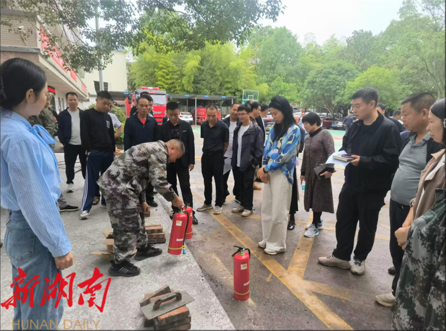 疏散演练后,消防器材实操培训随即展开。现场设置模拟火点,配备干粉灭火器、消火栓、高压水带等实战器材,镇消防专干进行现场教学。"使用灭火器时,需牢记'一提、二拔、三握、四压'——提住瓶身、拔掉保险销、握住喷管对准火焰根部、按压把手喷射……"专业人员详细讲解并示范了灭火器操作步骤、水带快速连接技巧及水枪精准喷射方法,强调"初期火灾扑救黄金3分钟"的处置要点。参训人员轮流上阵实操,在"手把手"指导下,逐一完成灭火器灭火、水带铺设、水枪喷射等全流程操作,亲身感受火焰扑灭瞬间的"实战感",切实提升了对消防器材的规范使用能力和初期火灾处置技能。