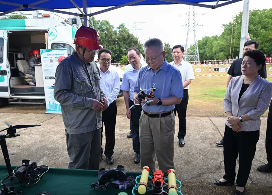 9月2日,沈晓明来到国网湖南电力公司带电作业与智能巡检技术装备基地调研。