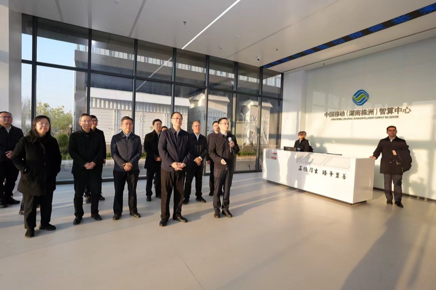 毛伟明在中国移动(湖南株洲)智算中心调研。