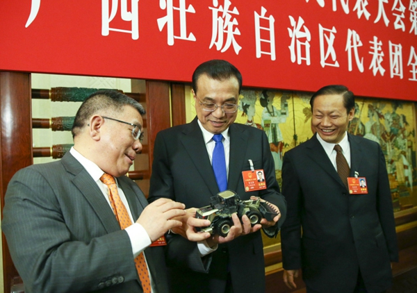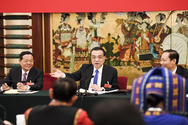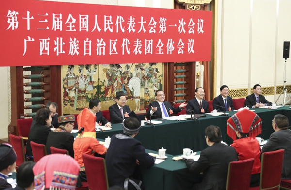 中共中央政治局常委、国务院总理李克强6日上午来到他所在的十三届全国人大一次会议广西代表团,参加审议政府工作报告。彭清华、陈武、罗朝阳等代表就经济社会发展、对外开放、装备制造升级、支持乡村振兴等问题先后发言,代表们还向李克强展示了扶贫进展、企业创新的照片和模型。李克强在发言中说,过去5年,在以习近平同志为核心的党中央坚强领导下,我国发展取得历史性成就、发生历史性变革,广西也取得了来之不易、弥足珍贵的发展成绩,主要经济指标好于全国平均水平。今年我国改革发展任务依然艰巨,要贯彻党的十九大精神,以习近平新时代中国特色社会主义思想为指导,按照高质量发展的要求,多谋发展良策,狠抓发展实效,统筹做好稳增长、促改革、调结构、惠民生、防风险各项工作。