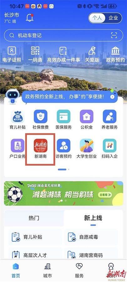 “湘易办”首页金刚区已上线新湖南资讯