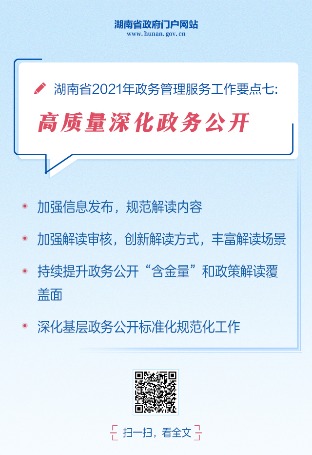 海报 | 湖南省2021年政务管理服务、政务公开工作要点