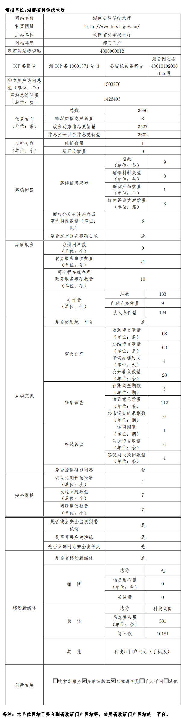 2017年湖南省科学技术厅网站工作年度报表