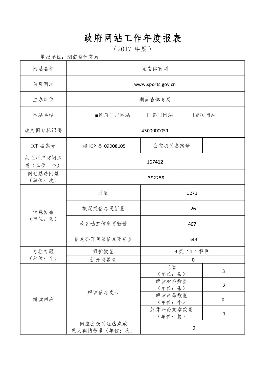 2017年湖南体育网工作年度报表