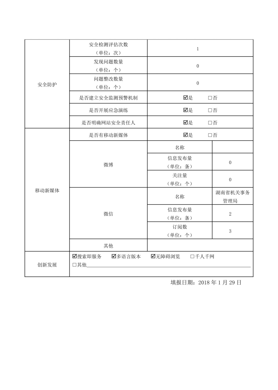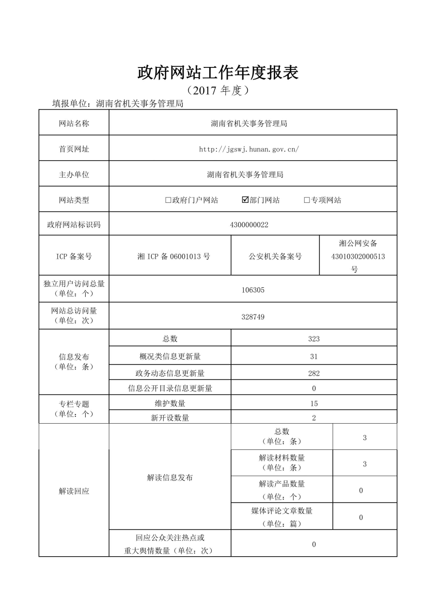 2017年湖南省机关事务管理局网站工作年度报表