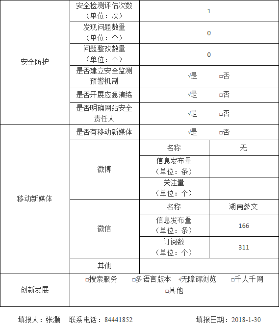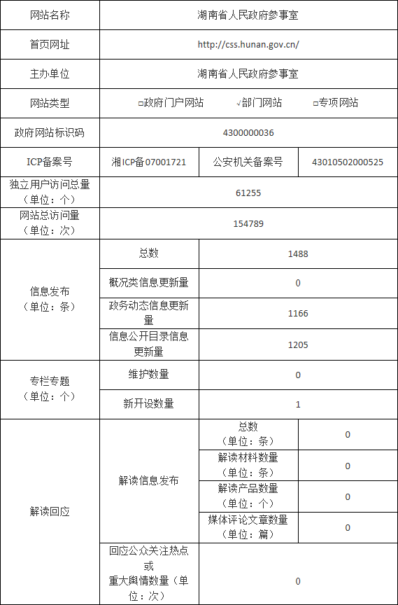 湖南省人民政府参事室2017年度政府网站工作年度报表