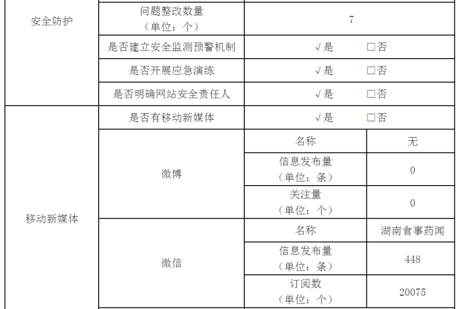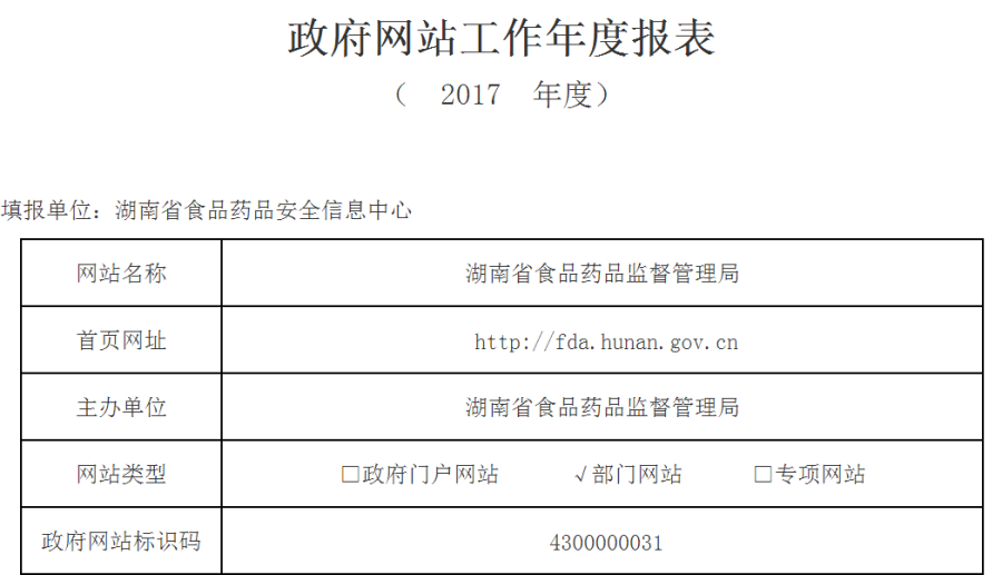 2017年湖南省食品药品监督管理局网站工作年度报表