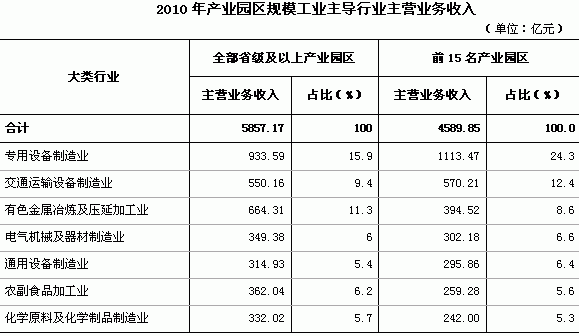 一、2010年省级及以上产业园区整体发展现状