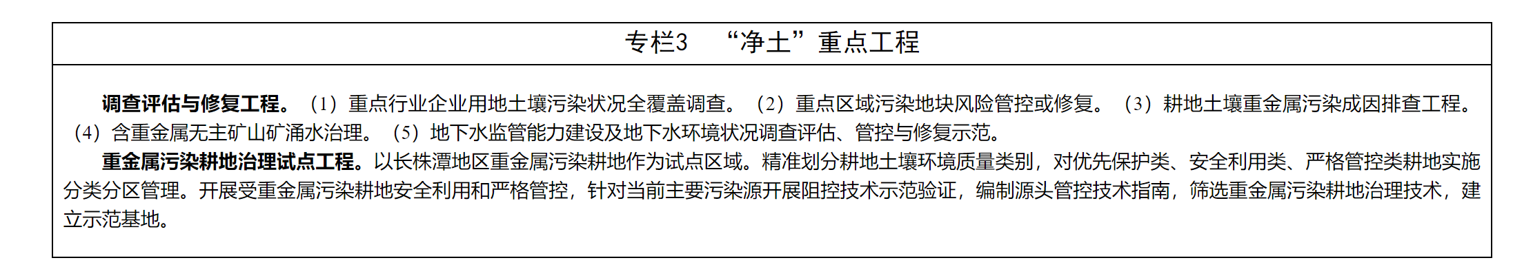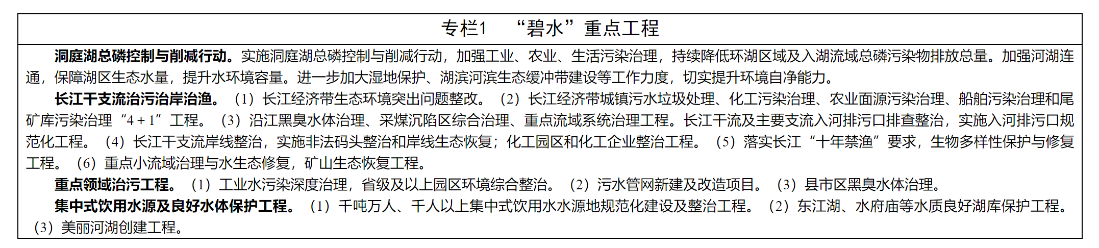 聚焦规划重点领域、重点任务和措施,实施“碧水”“蓝天”“净土”、农业农村、重金属、生态保护与修复、风险防范、能力提升等八个方向的重点工程。