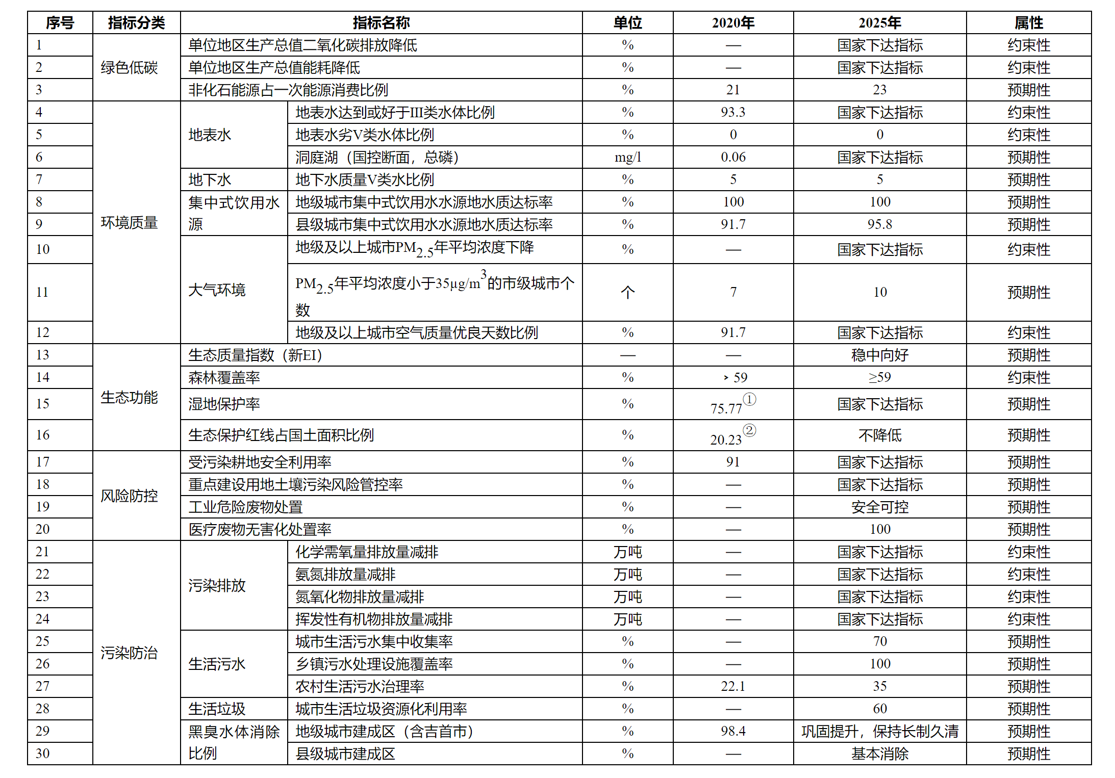 ②生态保护红线占国土面积比例:最终以省自然资源厅组织开展的生态保护红线优化调整和勘界定标结果为准。
