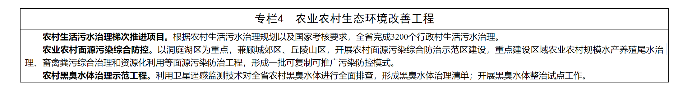 加强重点流域区域水污染治理。整合水功能区、水环境功能区,明确各级控制断面水质保护目标。实施洞庭湖总磷控制与削减行动,加强工业、农业、生活污染治理,持续降低环湖区域及入湖流域总磷污染物排放总量,加强河湖连通,保障湖区生态水量,提升水环境容量。针对湘资沅澧干支流及重点湖库水质不稳定达标水域,制定并实施达标方案,推动不达标水域限期达标。鼓励县级以上人民政府采取措施将辖区出境断面水质提升到地表水Ⅱ类标准。持续加强良好水体的保护,将具有重要保护意义的湖库,纳入良好水体保护范围。深入开展矿井涌水、历史遗留废渣导致的流域性重金属污染治理,重点解决锑、铊等水质超标问题。到2024年,地表水系水质控制单元稳定达到考核目标。持续打好城市黑臭水体治理攻坚战,地级及以上城市建成区实现黑臭水体长制久清,县级城市建成区基本消除黑臭水体。
