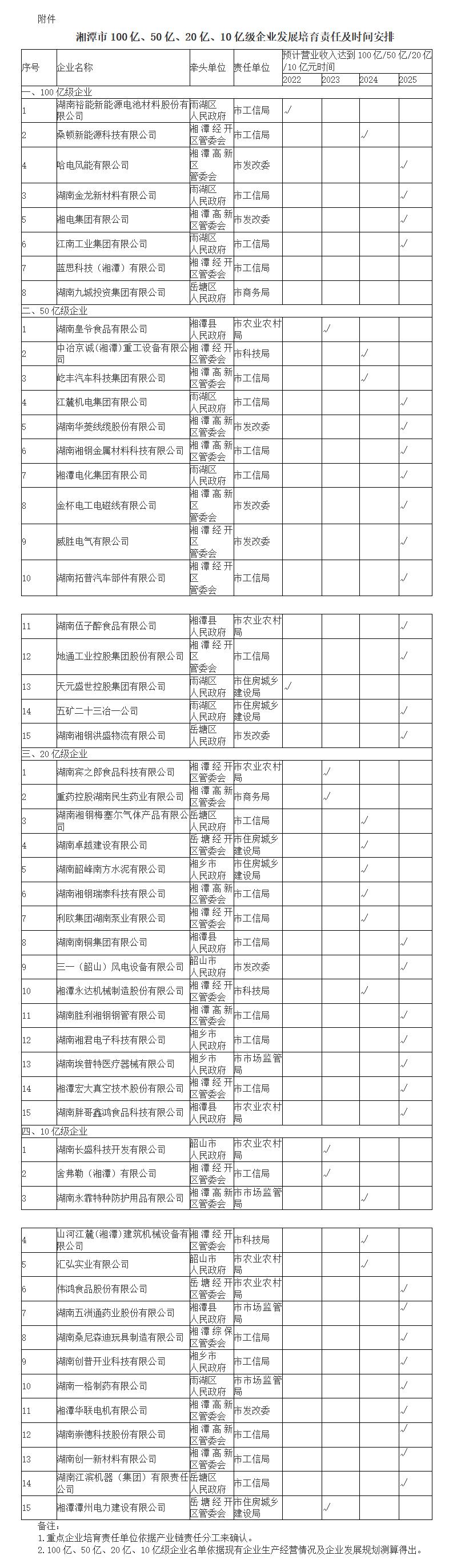 附件:湘潭市100亿、50亿、20亿、10亿级企业发展培育责任及时间安排