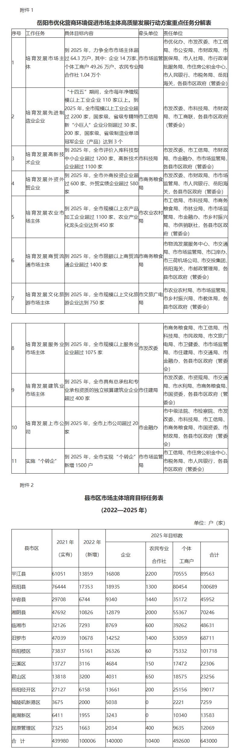 附件:1.岳阳市优化营商环境促进市场主体高质量发展行动方案重点任务分解表
