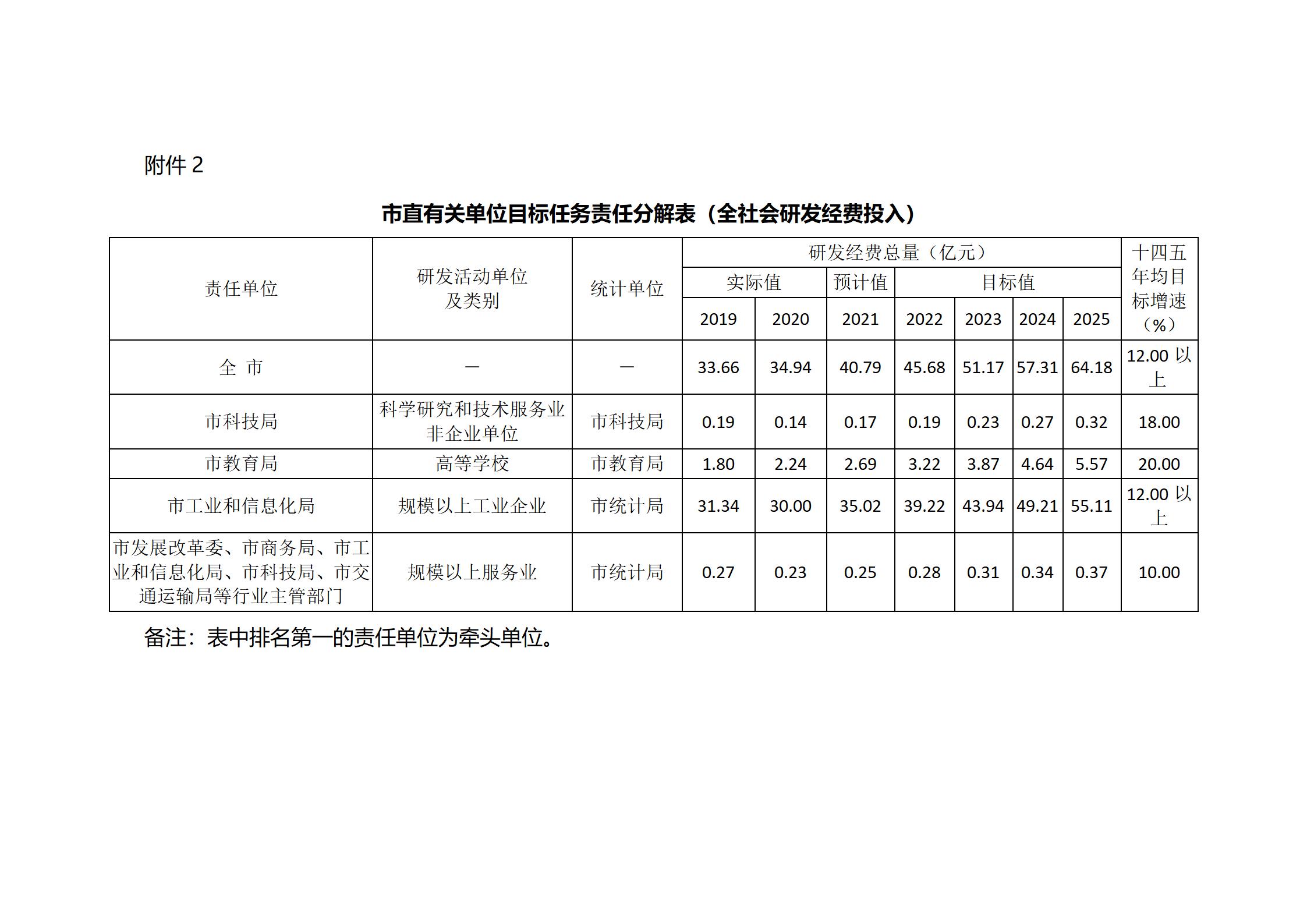 2.市直有关单位目标任务责任分解表(全社会研发经费投入)