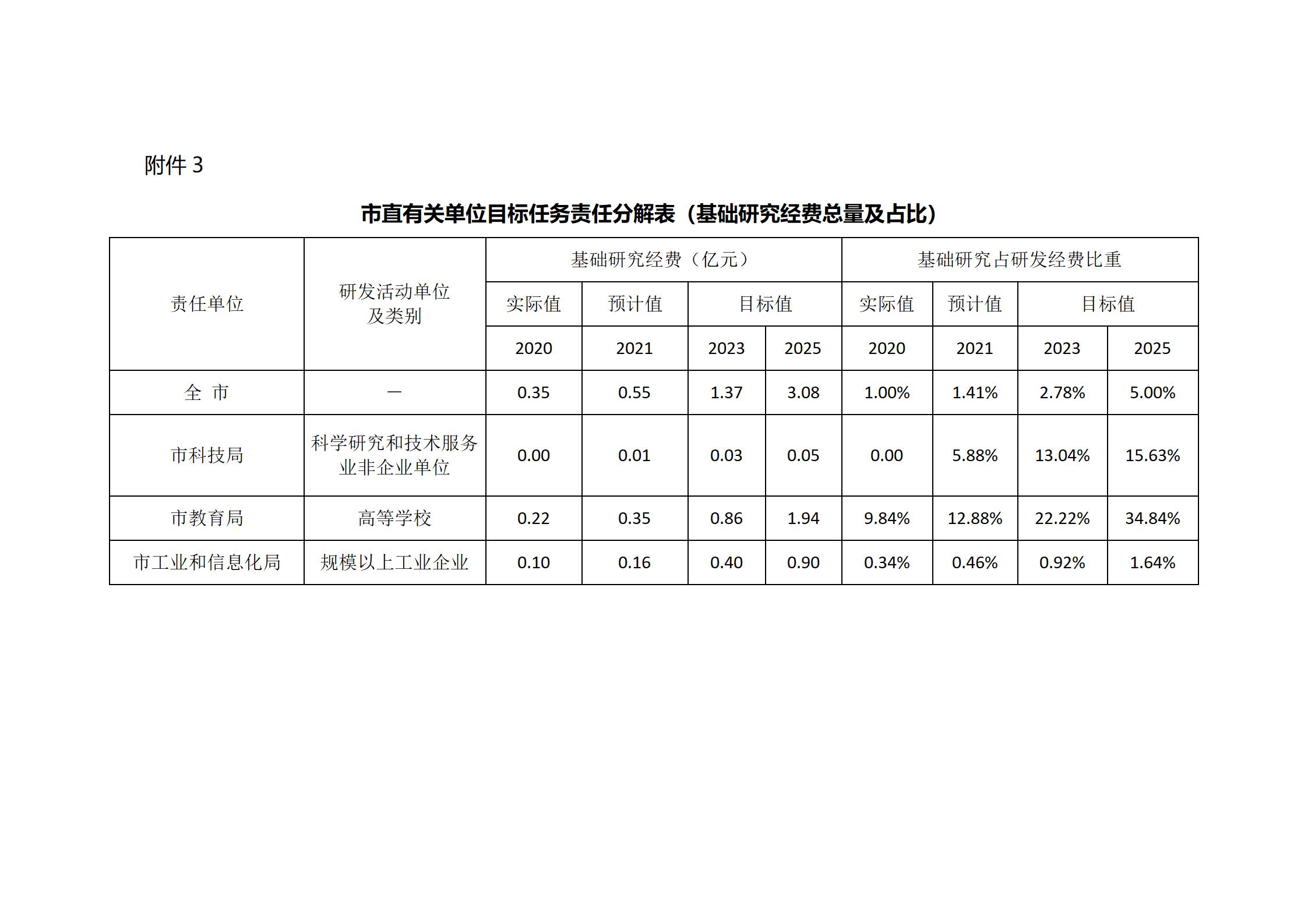 3.市直有关单位目标任务责任分解表(基础研究经费总量及占比)
