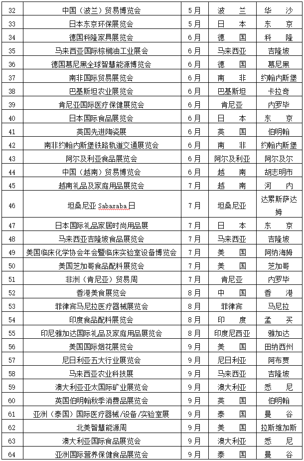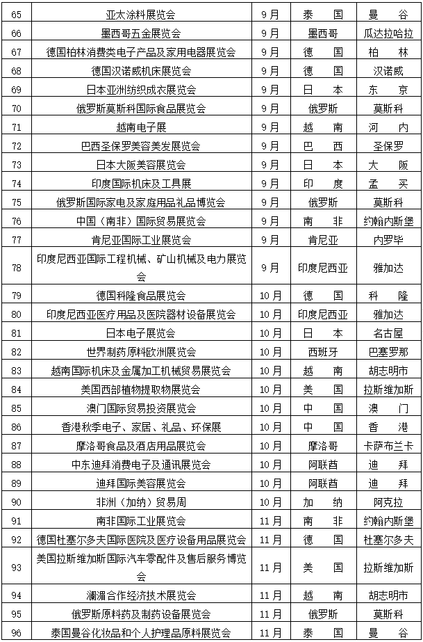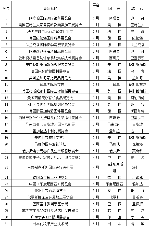为进一步支持鼓励我省外贸企业开拓多元国际市场,抢抓海外订单,推动全省外贸保稳提质,特制定《2023年湖南省重点境外展会目录》(以下简称《目录》),现予印发,并就有关事项通知如下: