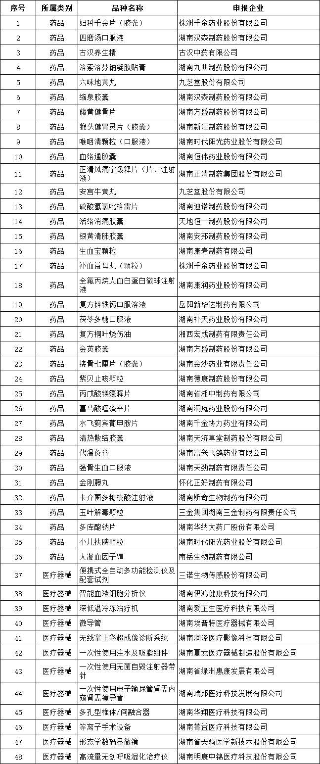 附件:湖南省生物医药产业链重点品种(第一批)名单