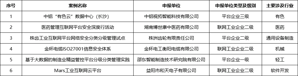 湖南省2022年工业互联网安全深度行活动典型案例名单